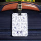 Blue and White Elegant and Classic French Floral luggage tag with personalized initials and editable details.