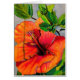 D'une aquarelle originale d'une fleur d'hibiscus tropicaux colorée et vibrante. Cette peinture à fleurs est lumineuse et orange avec un thème de la flore tropicale et du feuillage.