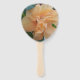 Photo rapprochée d'une fleur d'hibiscus orange clair sur un éventail à main. En attente de votre personnalisation sur le verso vierge