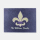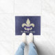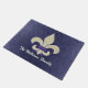 Stylish purple door mat, with a large Fleur Di Lys, in the centre. Personalize the text to read what you want.