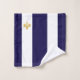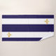 Élégante fleur dorée sur un ensemble de serviettes rayées bleu marine et blanc.