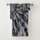 Ce kit de serviettes de bain comprend une serviette de bain, une serviette à main et un linge de toilette et dispose d'une fleur en dahlia noir et gris aux accents blancs.