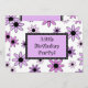 Invitation à la fête du 12e anniversaire d'une fille avec des illustrations amusantes de fleurs violettes, roses et noires, élégantes et jolies, entièrement personnalisables avec les détails de votre fête.