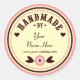 Autocollants retro amusants "Fabriqué à la main..." avec un design floral rose et marron. Personnalisez avec votre propre nom/nom d'entreprise et adresse de site/blog.