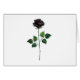 Rose noir symbolique, artistiquement dessiné avec des tiges vertes et feuilles sur arrière - plan blanc. Rose noir.