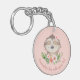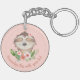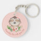 Porte - clé mignon paresse avec fleurs et arrière - plan rose roux. Personnalisez ceci avec votre texte.