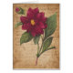 Art vintage d'une fleur rouge contre une couleur bronzée douce avec une lettre antique.