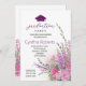 Moderne Fleur sauvage Summer Graduation Invitation présente des fleurs d'aquarelle dans les tons rose et violet, dans la verdure du jardin rustique. "Graduation" est écrit en calligraphie de script moderne, éditer et personnaliser avec vos détails. Disponible également en téléchargement.