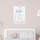 Bleu Dusty fleur sauvage fleuri ordre des événements poster mariage, panneau mariage.
