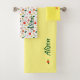 Ensemble de serviettes de bain vert fleur sauvage blanc nom rouge.