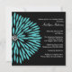 Commencez votre évènement par notre invitation à la douche nuptiale moderne et branchée, avec une grande et audacieuse fleur turquoise sur un arrière - plan carré noir. customisez simplement notre invitation avec vos informations mariages et vous êtes tous prêts à partir. Disponible dans notre boutique www.celebrateitinvites.com dans d'autres combinaisons de couleurs © tracy an art numérique