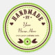 Autocollants retro amusants "Fabriqué à la main..." avec un design floral en vert et marron. Personnalisez avec votre propre nom/nom d'entreprise et adresse de site/blog.