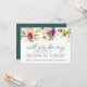 Choisissez ces belles cartes pour demander à votre bestie ou soeur d'être votre matron d'honneur dans le style élégant. Design floral aquarelle moderne avec une bordure supérieure de roses et de pivoines violet violet, rose et vert, avec typographie décorative et lettrage gris bleu fumé. Le libellé de la carte d'honneur du Métron d'honneur dit : "serez-vous mon chef d'honneur? Je ne peux pas dire que je le fais sans toi !" Ajoutez le nom et le nom de votre matron d'honneur, ou personnalisez avec un message complètement personnalisé en bas. Cartes inversées à bijou solide tonique jasper vert.