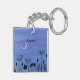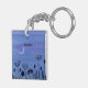 Un tableau aquarelle de jolies fleurs sous un croissant de lune orne ce porte - clé personnalisable !