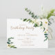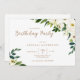 Invitation à la fête d'anniversaire florale d'aquarelle blanche. Texte en or.