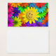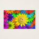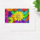 Fleur adorable et mignonne de visage heureux jaune reposant sur un lit de fleurs aux couleurs néons vives. Coloré et gai.