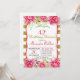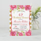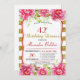 Élégante invitation à la fête d'anniversaire avec arrière - plan rayé blanc&or, entouré de fleurs. Cadre rouge au centre fermant les textes rouge et or, en fait une invitation parfaite complétant une soirée inoubliable passée avec le plus proche.