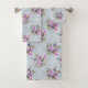 Magnifique serviette de bain avec motif floral aquarelle violet sur fond bleu à pois blancs. Le set comprend une serviette de bain, une serviette de toilette et un gant de toilette. Ceux-ci font de très beaux cadeaux de douche de mariage ou de mariage ou rafraîchissent votre salle de bain avec un nouvel ensemble de serviettes.