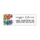 Le mariage Lgbt renvoie les étiquettes d'adresse en blanc avec des fleurs de couleur orgueilleuse. Les étiquettes d'adresse de retour de mariages gays sont en blanc avec des fleurs de couleur arc-en-ciel. Floral lesbienne mariage retourne des étiquettes d'adresse avec des fleurs dans toutes les couleurs de l'arc-en-ciel.