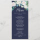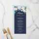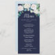 Cette carte classique de dîner mariage marine aux fleurs blanches est parfaite pour un mariage de automne. L'élégant design floral présente des roses blanches et en ivoire, des pivoines et du chrysanthème, avec des touches de fleurs d'aquarelle bleu percé et du feuillage vert sur un arrière - plan bleu foncé. Ce menu peut être utilisé pour une réception de mariage, un dîner de répétition ou tout événement.