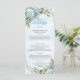 Fleurs bleues dorées modernes Menu Mariage or blan