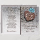 Fleurs sauvages bleues, coeur rouillé métallique avec monogramme sur bois rustique cérémonie de mariage et programme plié de fête avec un coeur métallique rouillé brun avec initiales clouées sur patiné panneau de bois grise et trois fleurs sauvages bleu aqua. Ce modèle à fleurs monogrammed est entièrement personnalisable et fait partie d'un ensemble ou d'une collection de mariages, parfait pour un mariage de grange d'été ou d'automne. Il faut le plier au centre. Choisissez seulement ce type de papier-valeur comme il se plie bien.