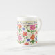 Un chic Bone China Mug à personnaliser, avec un motif coloré de Fleurs roses et orange et Pois sur un Arrière - plan Ecru texturé en feuilles. Faisant partie de la collection Posh & Painterly 'Rangoli', ce motif peut être ajusté pour s'adapter à n'importe quelle Mug.