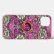 Design floral coloré, élégant et classique avec des tourbillons, paon, oiseaux et figurines de dragon en rose, noir blanc fuchsia violet violet couleurs sont élaborés à partir de tissu vintage avec un gemme améthyste 3D brillant.