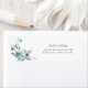 Étiquette d'adresse de retour simple, élégante et chic, joliment aquarellée avec fleurs bleu violet gris.