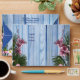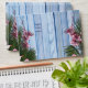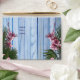 Design artistique en bois vintage bleu texturé avec décor de fleurs graphiques rose pour un invité ou un chalet de plage pour tenir un mariage. Cette collection est accompagnée d'un livre d'or pour les clients mariages ou les visiteurs de vacances à signer