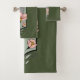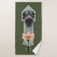 Un joli portrait d'autruche aux fleurs roses, le tout dessiné dans un style art déco, tout en vert