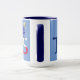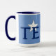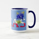 Design unique de tasse avec les couleurs du drapeau du Texas contre un arrière - plan bleu, avec un accent de Bluebonnets. La fleur Bluebonnet est la fleur d'état du Texas. En mars et avril, ces belles fleurs fleurissent dans les champs et les autoroutes.