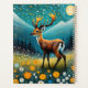 Un cerf mignon se tient sur une prairie fleurie avec des montagnes et des pins arrière - plans la nuit. Personnalisez-le en changeant le nom.