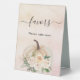 Un fond dégradé rose doré et rose poudré, une citrouille couleur crème et des fleurs. Texte : Faveurs, veuillez en prendre une.