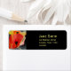Belle étiquette de adresse florale et personnalisée avec un design floral de fleurs de pavot rouge et jaune fluides illustration de l'artiste Sacha Grossel contre une élégante couleur noire personnalisable. Le texte est entièrement personnalisable pour inclure vos propres détails personnels.