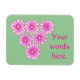Le design décoratif des mamans roses aux centres jaunes, avec un espace réservé pour votre texte, est imprimé sur des magnets personnalisés. Le texte peut être facilement customisé sur le formulaire modèle. L'arrière - plan est vert clair et peut être customisé à n'importe quelle couleur de votre choix. Il y a des articles correspondants dans ce magasin. Merci pour faire du shopping à CherylsArt sur Zazzle.