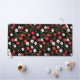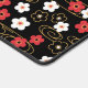 Illustration vectorielle de fleurs stylisées en sakura noir, rouge et blanc et de tourbillons dorés sur arrière - plan noir. Inspiré par les motifs japonais traditionnels de tissu kimono.