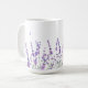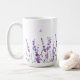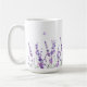 De jolies fleurs de lavande pourpre et des papillons confèrent une tasse de café.