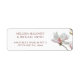 Fleurs de magnolia peintes en rose blanc sur fond blanc. Utilisez cette étiquette avec les noms complets en complément au faire-part de mariage décontracté avec uniquement les prénoms.