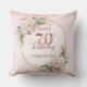 Célébrez 70 ans avec style avec cet oreiller doré rose scintillant. Avec des fleurs de peinture à l'eau rose poussiéreux, rose clair et rose saumon, une verdure luxuriante, des accents d'eucalyptus et un cadre doré, ce design boho, floral et bohème est un cadeau parfait pour un coussin de 70e anniversaire.