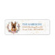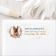 Le côté gauche de ces étiquettes d'adresse de retour présente l'image d'une couronne de fleurs de printemps aux couleurs rose, bleu, or, vert et crème. Au centre se trouve un beau portrait d'un Chien berger allemand. De minuscules confettis d'or donnent un éclat subtil à l'arrière - plan. Votre texte personnalisé est en or bleu et brun à droite.