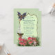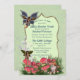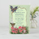 Histoires de conte de fées de tabouret rouge et blanc dans une vallée de champignons de rêve où de nombreuses créatures d'imaginaires vivent pour une nouvelle carte d'arrivée pour bébé