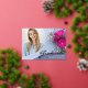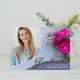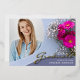 Une carte de faire-part de graduation photo unique, avec des éléments de design d'élégante écriture manuscrite avec le mot "Graduate" dans le papier à papier (les options de couleur de papier sont or, argent et rose). La photo des diplômés est rehaussée par de belles fleurs roses et blanches dans des tons bleu poussiéreux. Le verso de la carte offre des espaces de texte personnalisés pour des informations sur la graduation et le futur voyage. Pour voir d'autres articles comme celui-ci, visitez mon magasin ici à "www.Zazzle.com/LakeViewCardCo". Merci
