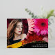Une carte de faire-part de graduation photo unique, avec des éléments de design d'élégante écriture manuscrite avec le mot "Graduate" dans le papier à papier (les options de couleur de papier sont or, argent et rose). La photo des diplômés est rehaussée par de belles fleurs multicolores sur un arrière - plan noir royal. Le verso de la carte offre des espaces de texte personnalisés pour des informations sur la graduation et le futur voyage. Pour voir d'autres articles comme celui-ci, visitez mon magasin ici à "www.Zazzle.com/LakeViewCardCo". Merci