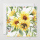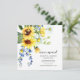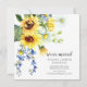 Faire-part fleuri avec bouquet de tournesols et fleurs de marguerite sur un arrière - plan blanc avec un dos de coordination.