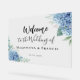 panneau de bienvenue de mariage d'hortensia bleu en acrylique clair