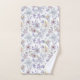 Un bel ensemble de serviettes de bain florales Iris violet lilas et vert tendre. L'ensemble comprend une serviette de bain, une serviette de toilette et un gant de toilette.