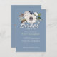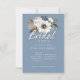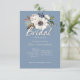 Belle invitation à la douche nuptiale 5 x 7 plat avec fleurs bleues et blanches off. Cette belle invitation donne le ton d'une douche nuptiale mémorable.