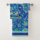 Ensemble de serviettes magnifique avec des fleurs, des oiseaux, des motifs sur un fond d'une teinte éclatante de bleu royal bordé d'aqua et de jaune. Design vibrant unique idéal pour les salles de bain invités, ou pour les occasions spéciales mariages, douches etc. Nous avons un grand choix de serviettes allant des classiques aux excentriques pour satisfaire tous les goûts.