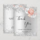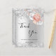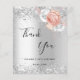 Un carte de remerciements pour un 50ème anniversaire (ou tout âge). Un arrière - plan faux argenté. Décoré d'or rose et de fleurs blanches, de fleurs et de faux parties scintillant, scintille. Sur le devant, un script écrit à grande main et le texte : Merci, votre texte, titre et une date. Retour : personnalisez et ajoutez Votre note de remerciement et votre nom.